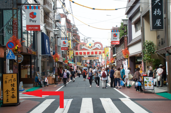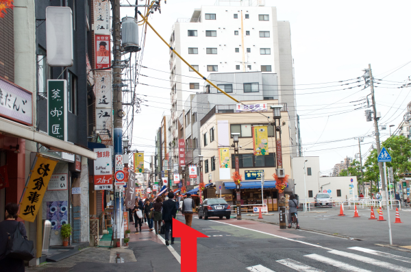 1:巣鴨駅改札を出てそのまま直進し、信号を渡り右折します。